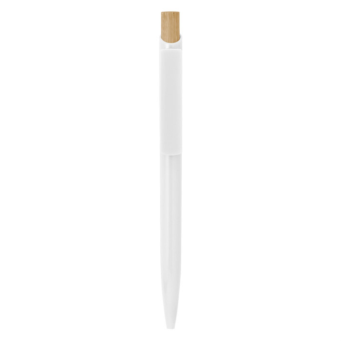 Bolígrafo retráctil. Cuerpo de diferentes colores. Pulsador de bambú. Clip del mismo color del cuerpo.