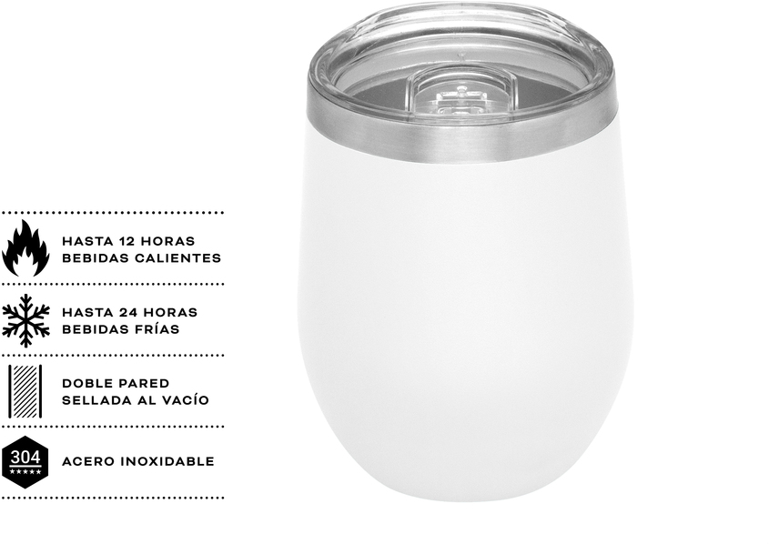 Mug doble Pared. Interior de plástico y exterior acero inoxidable 201. Pintura Powder Coat (pintura mas duradera y resistente a la corrosión y el paso del tiempo). Tapa plástica transparente a presión con anillo de silicona. Base antideslizante.